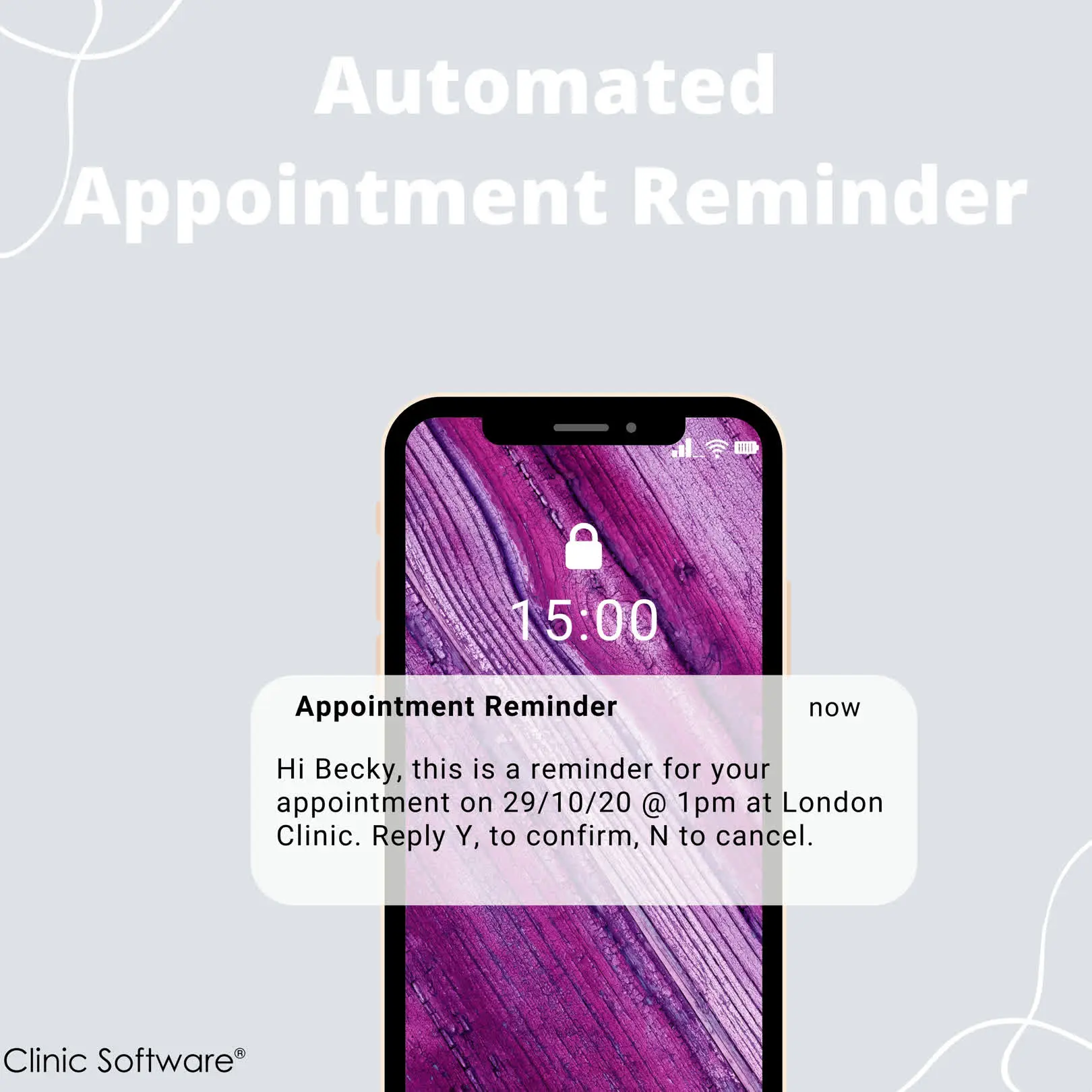 At ClinicSoftware.com all the reminders, messages and marketing campaigns are fully branded with your company name, your own wording and 2 way so your customers can reply to confirm at any time.